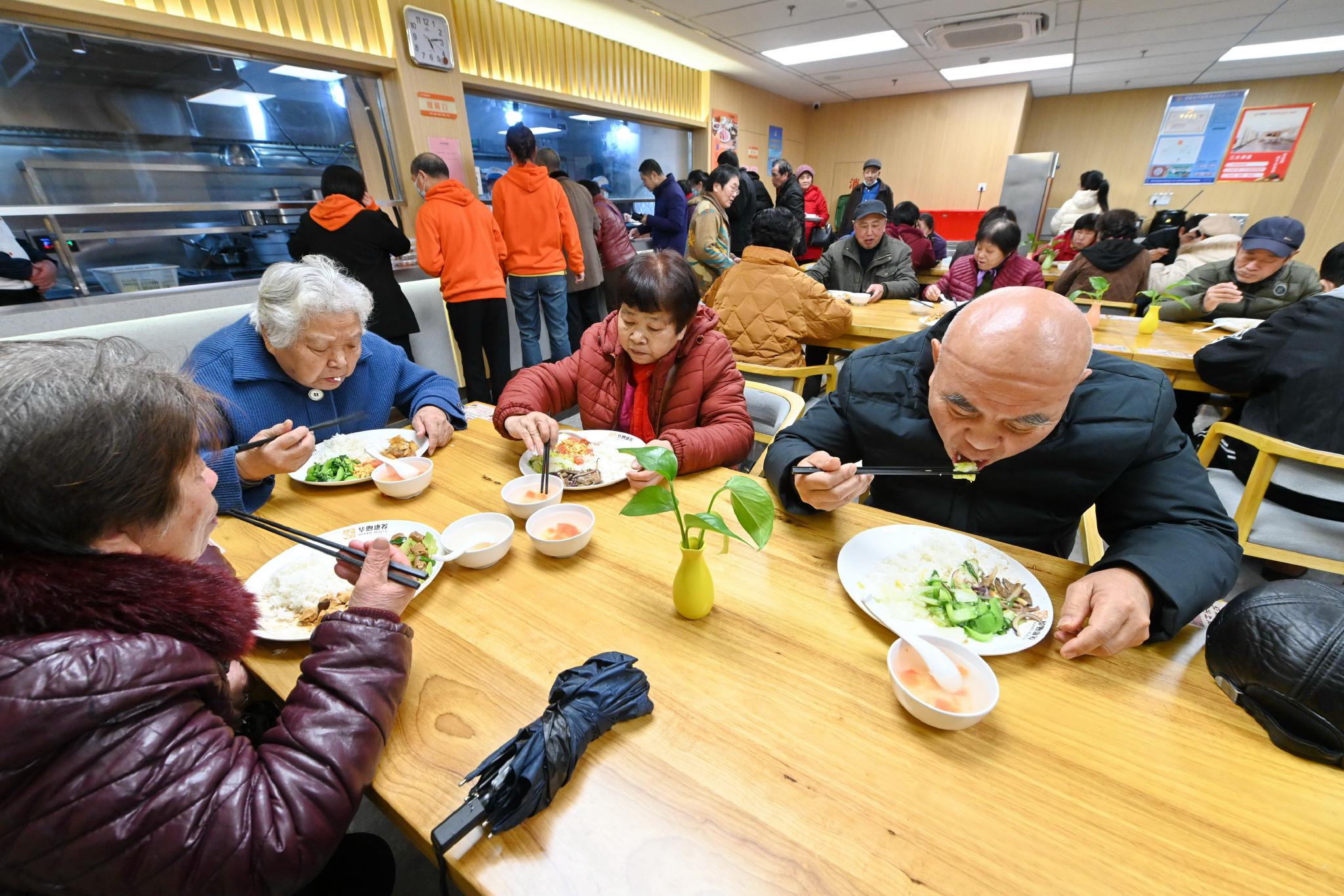 2月18日,福州市鼓楼区洪山镇锦江社区老人在锦江久号长者食堂吃午餐。新华社记者 林善传 摄