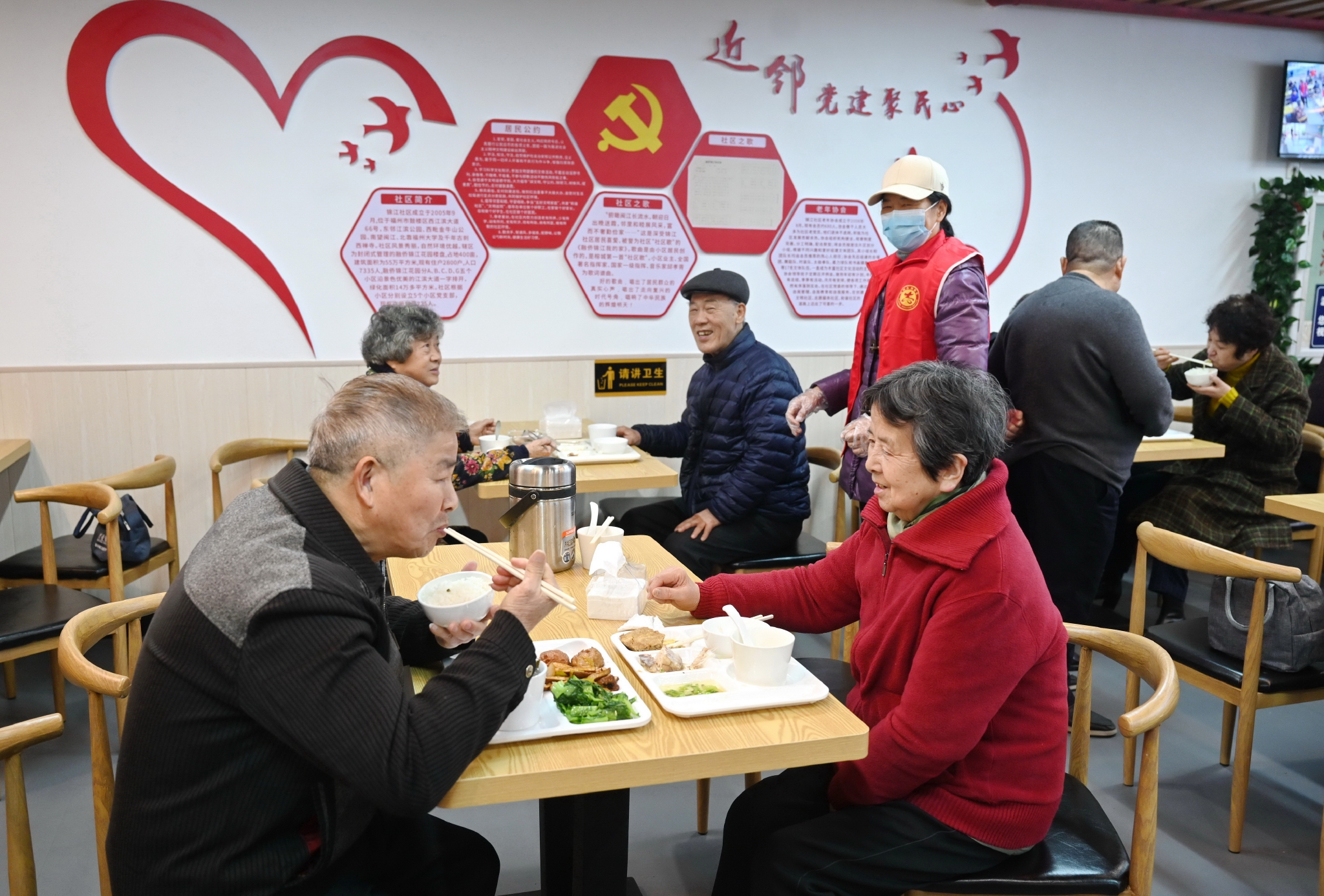 2月18日,福州市鼓楼区洪山镇锦江社区老人在锦江久号长者食堂吃午餐。