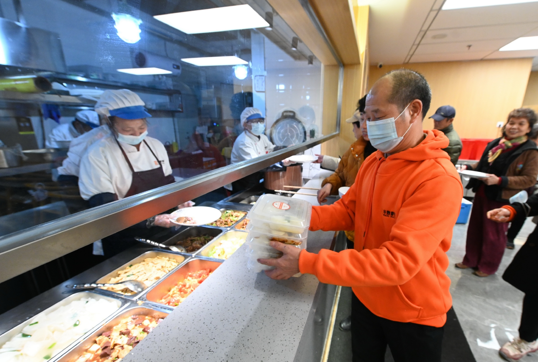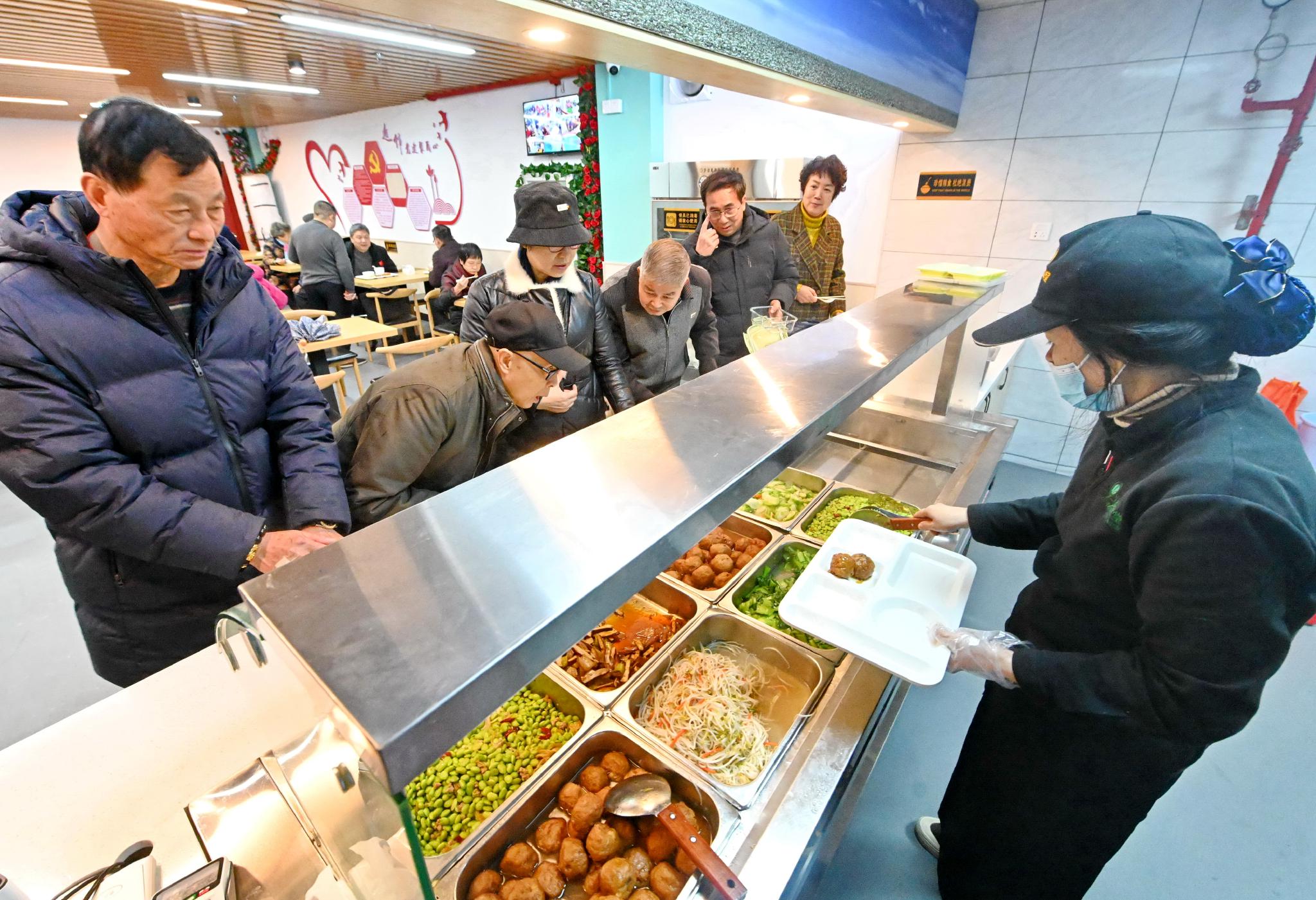2月18日,福州市鼓楼区洪山镇锦江社区老人在锦江久号长者食堂选购菜品。新华社记者 林善传 摄