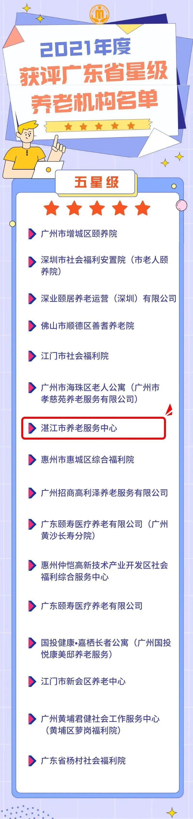 日前,广东公布获评2021年度星级养老机构名单,全省有16家获评五星级,湛江市养老服务中心占一席,打破了过去该五星级机构被珠三角地区包揽的局面,成为粤东西北地区首家五星级养老机构。
