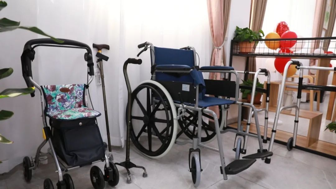 分中心二楼,还有一处适老化改造的展示空间,展示着厨房、客厅、卧室等不同区域的适老化用具。
