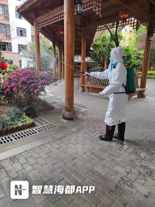 穿好防护服,戴上口罩和护目镜,背上数十斤的消毒设备……连日来,在位于仓山区金塘路附近的国德老年康养中心内,工作人员手拿喷头,扛着重重的水箱,对长廊、长者志愿服务站、楼梯、养老外围等公共场所和重点区域都进行仔细喷洒,确保消杀全方位、全覆盖、不留死角。