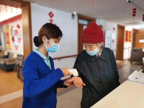 针对老人的健康管理,养老机构每天分时段为老人测量体温,全天候进行健康观察,实时掌握人员情况做好记录和上报,并为每一位老人建立防疫健康档案。