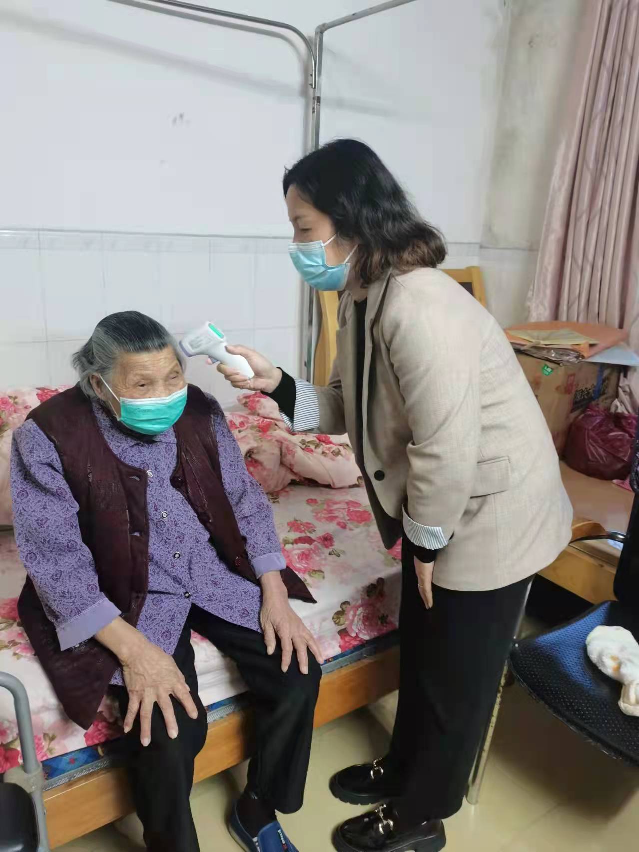 她积极践行责任,落实好全院清洁消毒,全面清除卫生死角,守护敬老院卫生安全;落实晨检制度及体温监测记录。安排工作人员每日早上查房,做好全院长者及员工的体温测量记录。