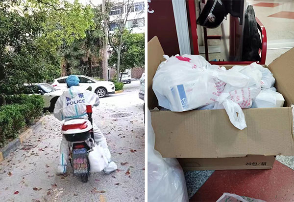陈宏斌到各家医院配好药后,细致核对了每一位老人的药物品种、数量等,确保准确无误后按“一人一袋”分装。此时,已过18时。顾不上回单位吃晚饭,陈宏斌将一大箱药装上警用电瓶车后立即送往养老院。在养老院大门外,民警放下药物,嘱咐前来接收的工作人员:“不要忘记做一下消杀,有需要随时联系我。”工作人员向民警竖起了大拇指,动容地说道,“你帮我们解决了大困难,感谢你们放弃小家,帮助我们大家!”