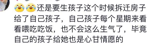 还有人说,要是这笔拆迁款给了自己的孩子,老人的心也不会这么不平了。