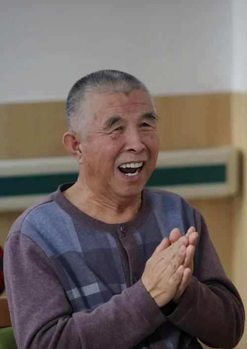在养老机构发布的视频中,一位在前排的老人吸引到了大家的注意,老人经常跟不上节拍,动作以拍手居多,但一直笑着。韩雨将他称为“鼓掌爷爷”,他虽然跟不上节拍,但是一直努力认真地学习着。