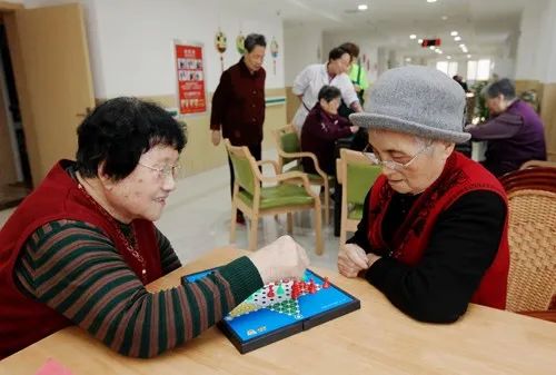 走廊的桌子上,苏惠香和邹淑琴两位老人正在下跳棋,她们两个人“跳”一下就念叨一句“走”,正如网友说的,“看起来很有爱”。