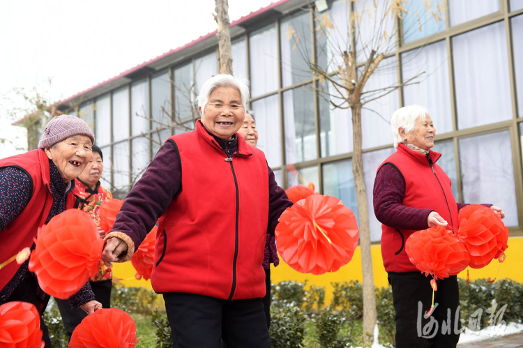 2022年1月25日,在河北省邢台市南和区益康老年公寓,老人们排练秧歌迎新年。河北日报记者赵永辉摄影报道